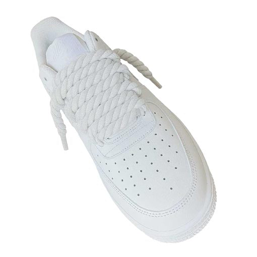 Les lacets épais, ronds et tressés en corde donnent immédiatement plus de présence à tes AF1: ils remplissent les œillets, créent une silhouette plus volumineuse et transforment ce classique en véritable pièce affirmée.